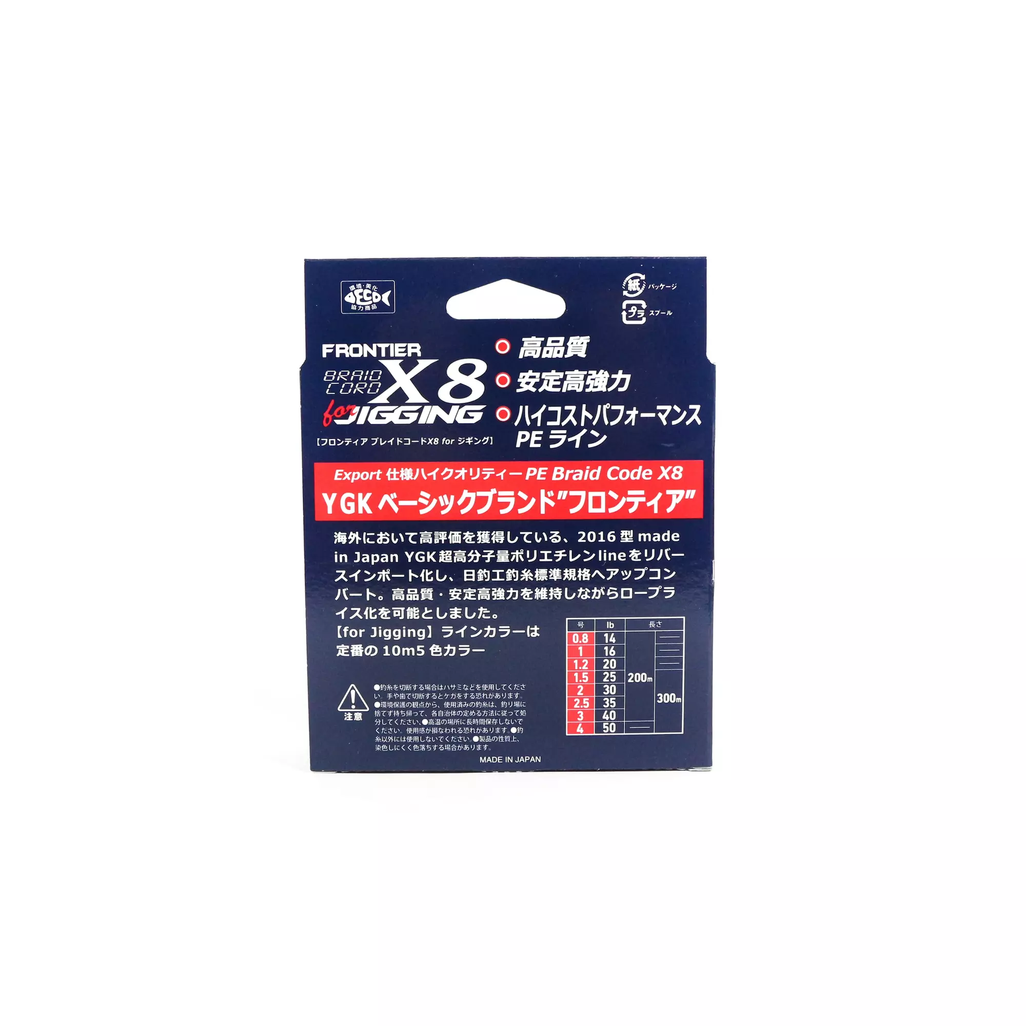 Rasgos del Trenzado YGK Frontier X8 For Jigging 200M
